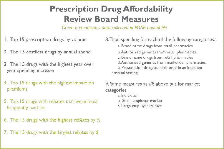 he image likely features data or infographic visuals related to the Prescription Drug Affordability Board (PDAB) measures from Colorado's Division of Insurance, aimed at managing prescription drug costs. It may include charts such as bar graphs, line graphs, or pie charts to showcase metrics like drug price trends, affordability benchmarks, or cost comparisons over time.